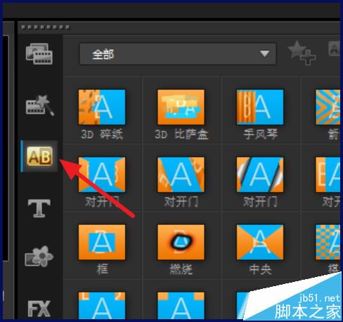 5、加好转场后,如果需要加上文字,点击【T】,可以看到各种样式的模板
