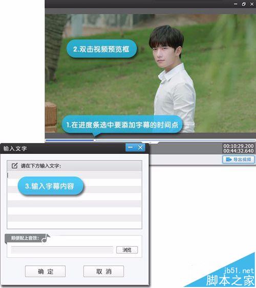 在“字幕特效”面板,在视频预览框中,选中要添加字幕的时间点,双击视频预览框,输入字幕内容,就能给配音视频加上字幕了。而且,爱剪辑还自带了很多缤纷秋叶、水珠撞击、雨中光斑等好莱坞级别的字幕特效,一键勾选就能添加。