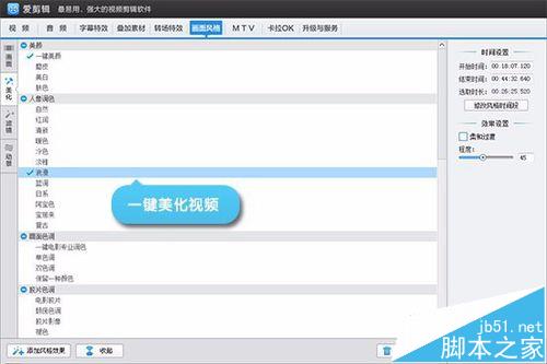 在“画面风格”面板中,爱剪辑预置了大量的唯美调色方案,包括“清新”、“日系”、“阿宝色”、“宝丽来”、“电影色调”等等,只需一键添加,就让配音视频变得美美哒!