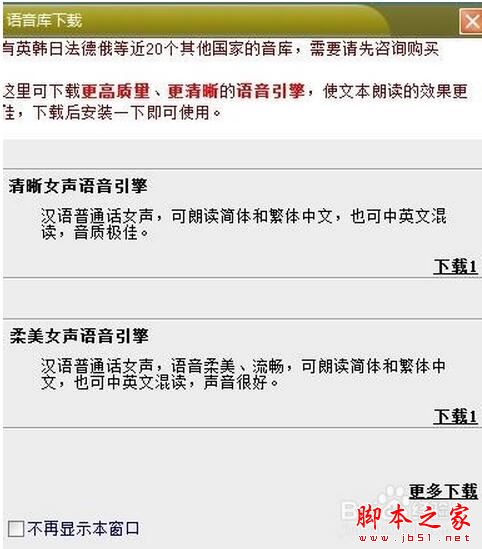 安装软件,关掉右上角的红叉即可,软件自带小巧女声播音,想要下载其他音包的可以点击下载
