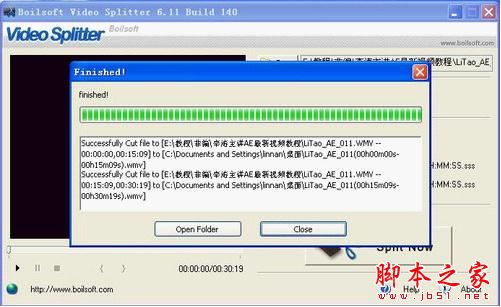 此软件对于经常上传视频的播客族来说,视频网站对于上传文件大小都有限制,对于较大的视频还需要分割成若干小文件,这时就可以使用Boilsoft Video Splitter的自动剪辑功能。软件默认平均分成2部分,可以实际情况调整后点击“Split now”自动分割保存成若干小文件。