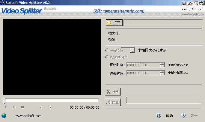 首先,下载安装并运行Boilsoft Video Splitter,可以看到软件主界面非常友好、功能布局直观、简单(图1),虽然是英文界面,但是使用起来并没有障碍。