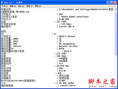 原视频文件参数导出之后(这里我是利用文本格式进行导出的),你可以点击进行查看,这也是一个很好的记录方法,而且更全面。