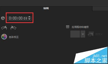 7、双击覆叠轨2上的图片,在编辑面板中将图片时间调整为,0:00:00:03;