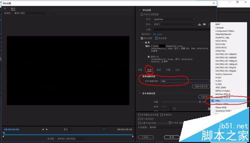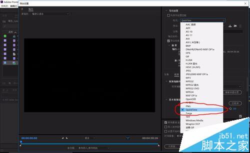 需先选择格式为quicktime 再到下方设置编码方式为png
