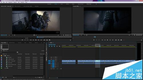 如果你剪辑的片段不知道位于素材的什么位置,那么F键将是你的救星,将时间指针按上下键指定到剪辑点,按F键就会在素材监视器窗口出现被剪辑的素材和出入点(按上下键切换)