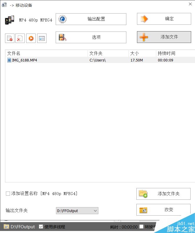 确定格式后,在新界面选择“添加文件”选中要转换压缩的视频,然后单击“确定”进入转换界面。