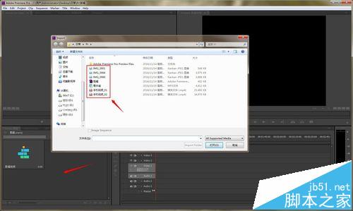 5、我们双击工程的空白处,就会弹出一个对话框,从对话框中将我们提前准备好的素材拖入到工程中来,如图所示。
