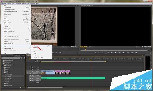 10、视频编辑好以后,我们点击“File>Export>Media”选项,在弹出对话框中设置倒出视频的属性,比如大小、帧率、格式等等,设置好以后点击“导出”即可,如图所示。