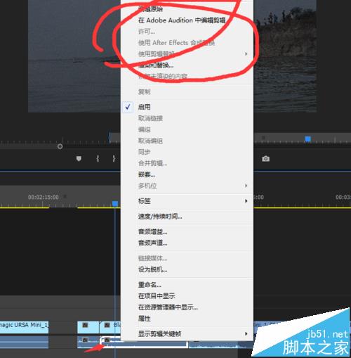 1、在premiere中遇到有噪音的时候,直接右击选择上方的在audition中编辑!