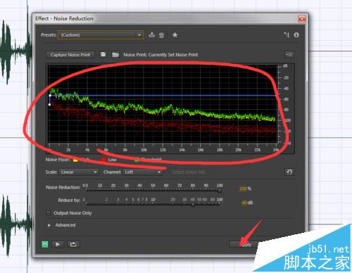 5、点击apply,就可以看到降噪的效果了,
