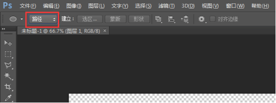 首先在ps中新建一个透明背景的文件,选择椭圆工具,在选项栏选择绘制路径,然后在画布中绘制一个圆形路径;