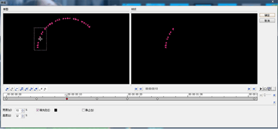最后可以给文字再添加一些效果,在滤镜库中找到修剪滤镜,拖到弧形文字的图片上;双击图片,选择“自定义滤镜”;设置多个关键帧,在每个关键帧上改变宽度和高度,让文字做到由左至右依次出现。具体操作方法参考:会声会影修剪滤镜效果实例教程。