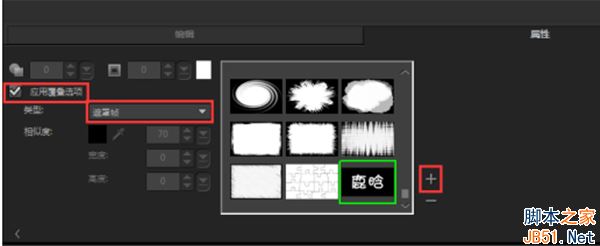 在覆叠轨2中插入一段动态视频,然后将其调到项目大小,双击素材,在属性栏中,点击遮罩和色度键,勾选应用覆叠选项,类型选择遮罩帧,单击右边的小加号,然后将刚刚快照的加入到遮罩素材中,点击它即可。如果不太熟悉添遮罩帧的步骤可以参考:会声会影遮罩帧的使用。