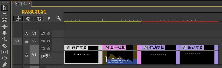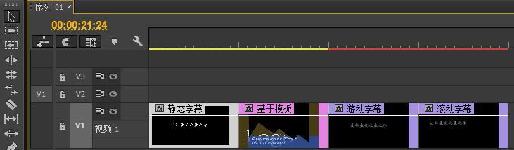 9、不同类型的字幕新建完成后,回到项目面板,我们发现静态字幕和基于模板的字幕相当于图片格式,而游动字幕和滚动字幕相当于视频格式。
