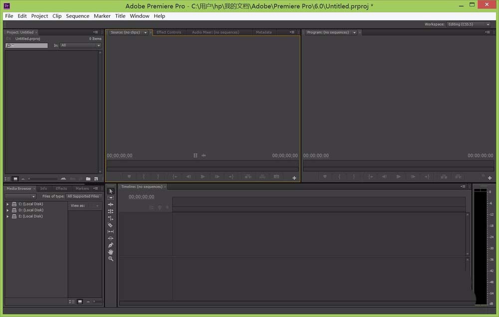 1、打开premiere这款软件,进入premiere的操作界面,如图所示: