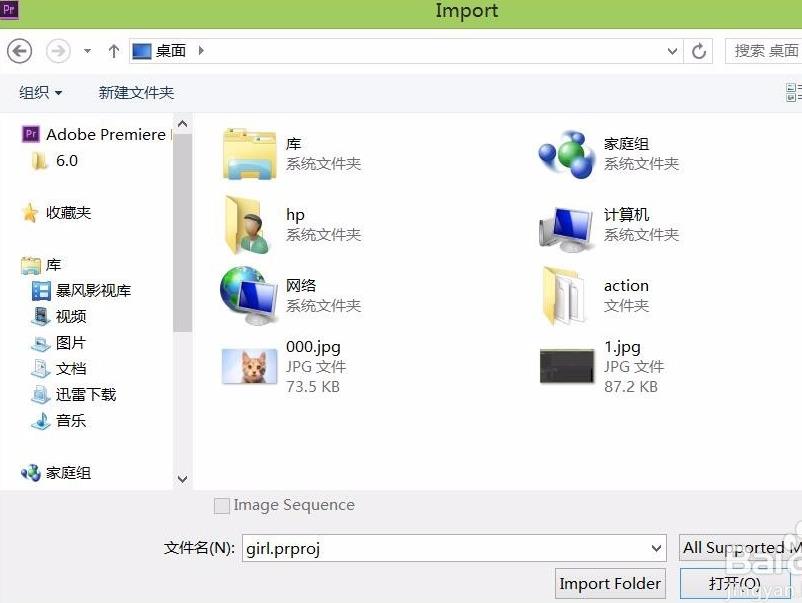 3、在该对话框内找到一张图片,点击打开,可以看到在project窗口里就出现了该图片,如图所示: