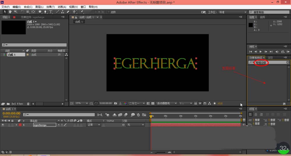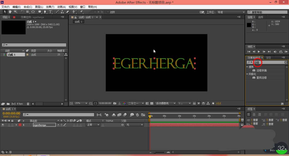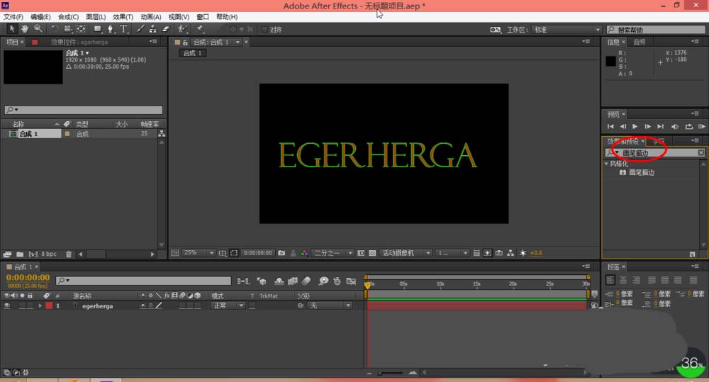 5、其实在aecc中“粗糙边缘”被翻译成了“画笔描边”,前后翻译的差别太大了。我知道后也很惊讶!我们直接搜索“画笔描边”就行了。