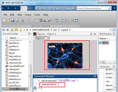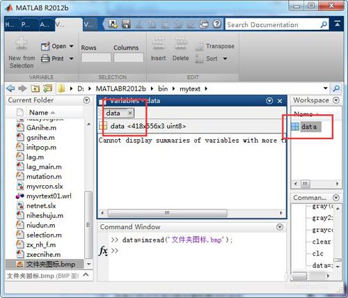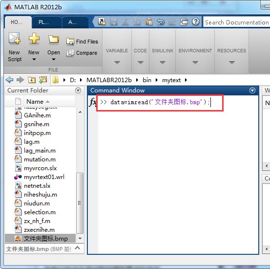 将自己准备的图片放在matlab的工作目录中,直接将图片复制到工作目录中,如图所示;