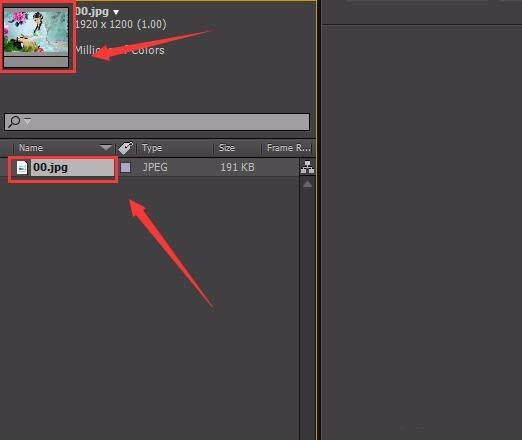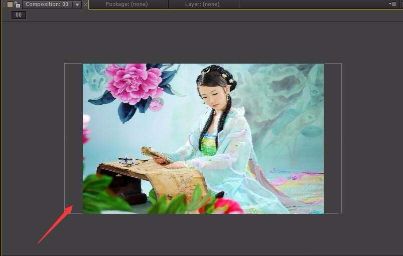 4、将该图片拖拽到composition窗口,在图片就显示出来了,如图所示: