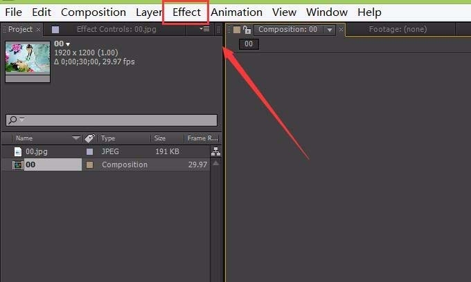 5、在上面的菜单里找到effect菜单,如图所示: