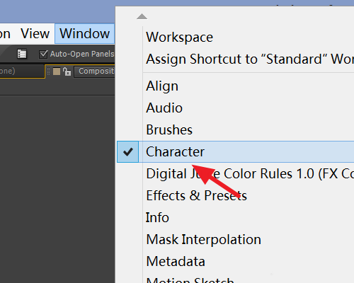 5、如果需要修改字体等,点击【窗口】查看【文字】前是否有打勾