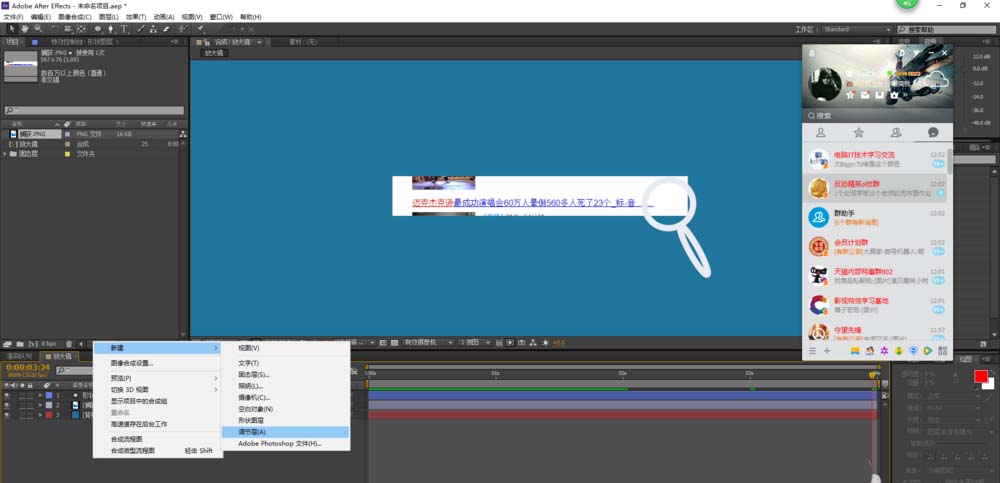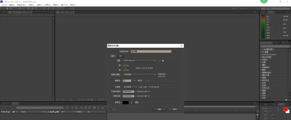 1、先是新建一个合成,将合成命名为放大镜,在给到它4秒钟的动画就可以了。