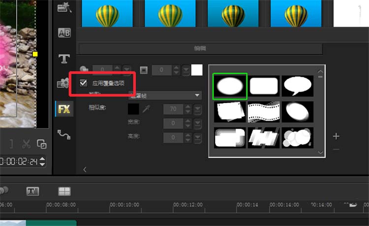 3、在【应用覆叠选项】前打对勾