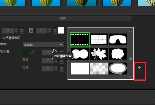 4、然后我们在类型选项中选择【遮罩帧】,然后我们就可以在后面的框中看到许多形状的遮罩,点击你需要的形状,我们就可以为素材添加遮罩。