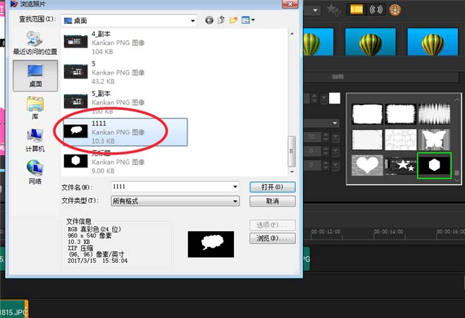 4、绘制好之后进行保存,然后打开会声会影,在遮罩帧中选择添加遮罩,我们就可以看到我们绘制的遮罩。