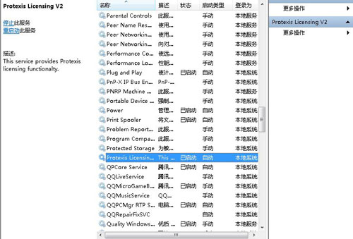 2、在服务里找到Protexis Licensing V2服务,启动即可