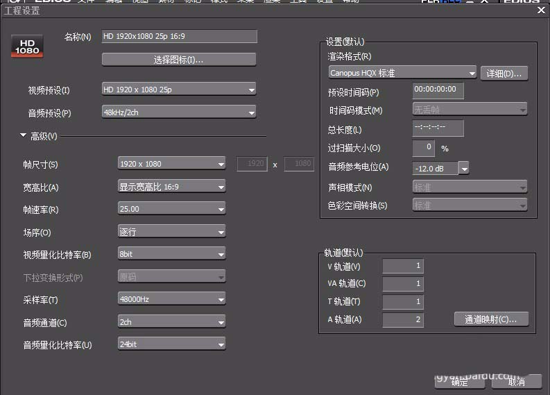 2、edius输出mp4,必须先做好工程预设。以下是标清视频工程设置