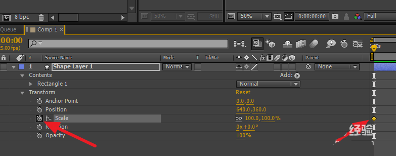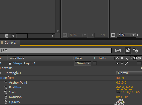 3、这时候会出现一个形状图层,点击【transform】前面的小三角