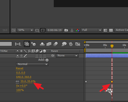 6、接着移动时间轴上的滑块到你认为合适的位置,改变scale的数值,即可出现另一个点,然后预览一下,即可有放大缩小的动画了