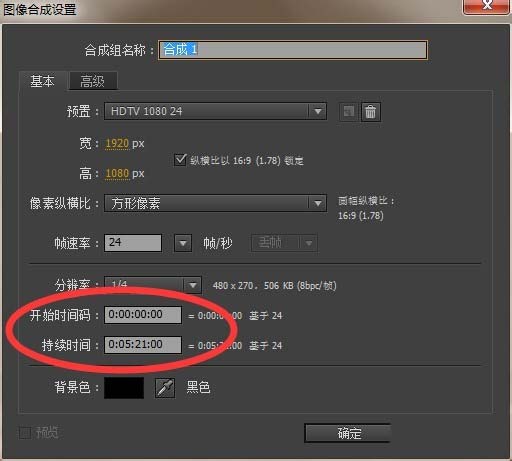 2、新建一个合成组,合成组持续时间为歌曲的时间