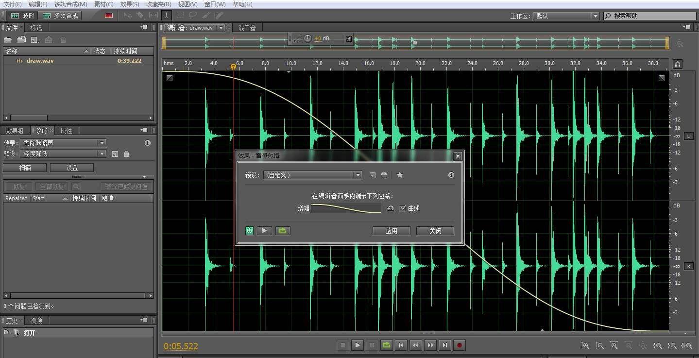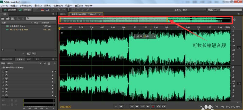 5、录好音之后,可以双击进入波形编辑进行试听。音频还可以拉长,方便找出录音过程中出现的问题