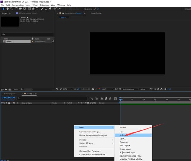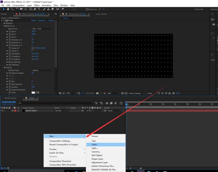 5、继续新建一个比较小的固态层,用来替换粒子(颜色根据自己需要)。