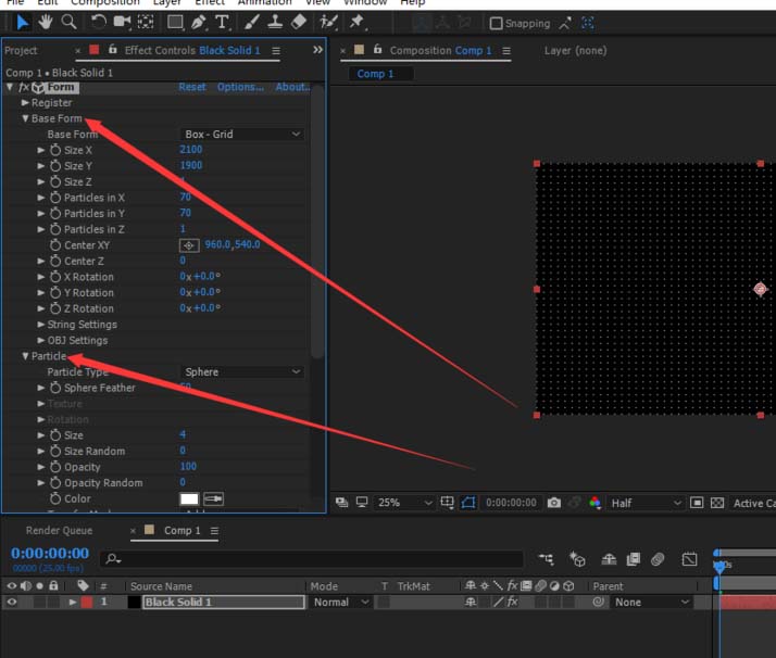 4、调节form的基本参数和粒子参数。