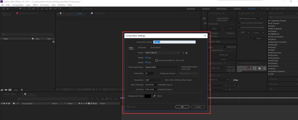 3、利用两个插件将预合成的大小裁切一下并将中心点设置到中心。