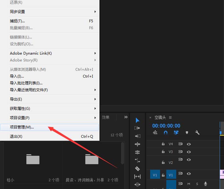 1、首先我们打开文件,里面有个项目管理,打开它