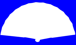 在PS上打开原图后,第一步是截取扇面,用魔术橡皮擦工具点击折扇外任意地方,背景就成透明了。再用磁性套索工具绕图1的周围一圈选定,ctrl+x剪贴,Ctrl+C粘贴,就得到扇面图层。关闭其它图层,用PS的多种工具将扇面上的文字图像去除(要保留褶皱线)最好是透明的,命名为“扇面”存储。