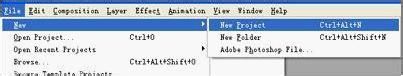 1、打开After Effects软件,执行File—New—New Project(新建立工程快捷键为Ctrl+Alt+N)。