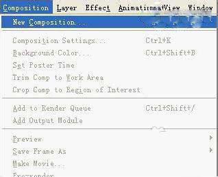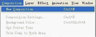 2、执行菜单Composition—New Composition新建合成命令,(快捷键为Ctrl+N)。