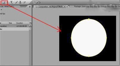 6、使用工具架中的圆形遮罩工具,在合成窗口中绘制出如图6所示的正圆形遮罩(小技巧:需要画正圆形,即按住Shift的同时,绘制出圆形便为正圆形)。
