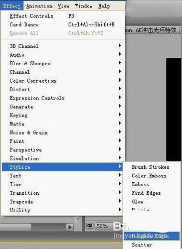 9、选择黑色固态层,执行Effect—Stylize—Roughen Edges,为该层添加粗糙边特效。