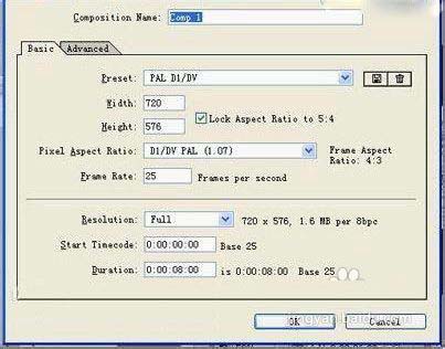 13、设置Prset为PAL D1/DV,时间总长为8秒。