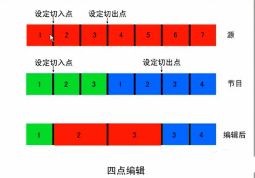 另一种是四点编辑,弄懂了三点编辑,那么四点编辑也是一样的,不过在源上需要编辑出点而已,这是图示