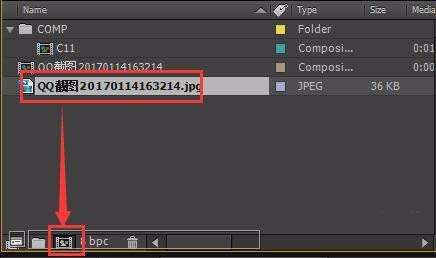 1、首先我们导入一张立体地图的底图,然后拖动此底图到如图所示的按钮上新建一个合成。