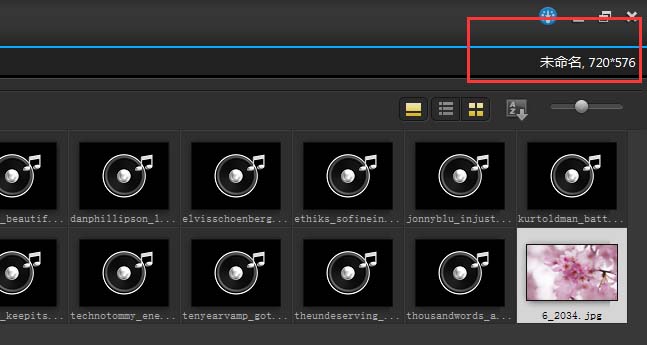3、看到到截图的右上角的红色线框内,这个是给编辑的文件或者是视频进行命名,就是保存是的文件名,没保存是就是这样显示【未命名】。