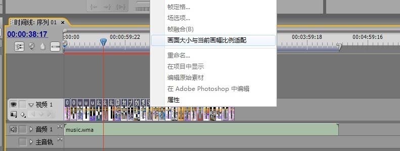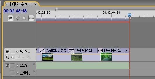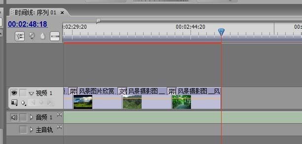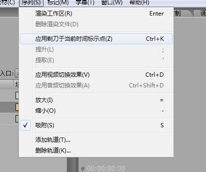 6、先选中时间线面板,再选择序列→应用剃刀到当前时间标记点